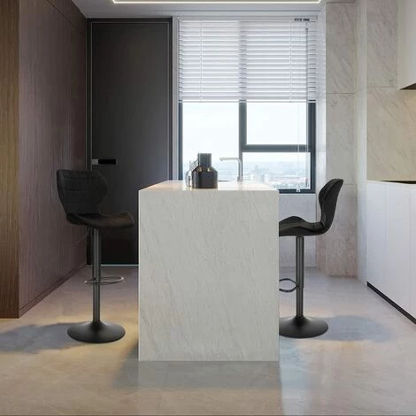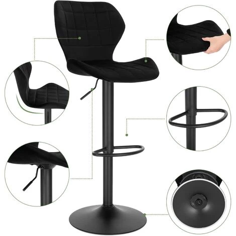 WOLTU Lot De 2 Tabouret De Bar En Velours.Réglables En Hauteur.Pivotant à 360°avec Dossier Repose-Pieds.Noir.siège 48x38cm
