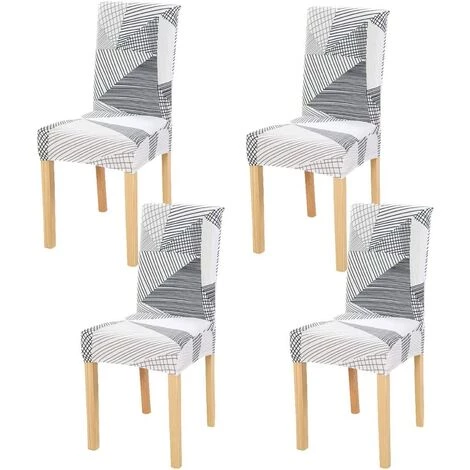 YIENJAOY 4 Pièces Housses De Chaise De Salle à Manger Couverture De Chaise Extensible Amovible Lavable élastique Pour Un Ajustement Universel,rayures Noires Et Blanches
