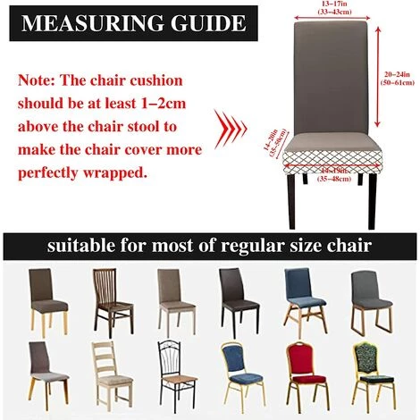 - 【TAILLE PARFAITE】 la hauteur du dos est de 17,7 à 23,6 pouces et la largeur du dos est de 15,7 à 19,7 pouces. La largeur et la longueur du siège sont de 15,7 à 19,7 pouces et l’épaisseur de 1 à 4 pouces. Il convient à la plupart des chaises de salle à manger générales. Veuillez confirmer la taille avant d’acheter. Veuillez noter qu’en raison de la mesure manuelle, une erreur de 3 à 4 cm est autorisée.