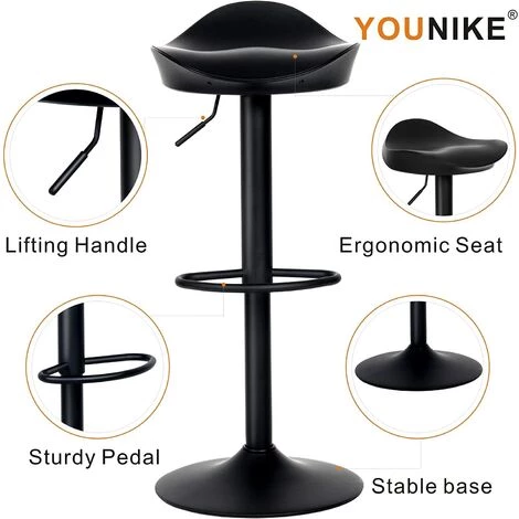 - Robuste et durable : le cadre en métal du tabouret de cuisine assure longévité, robuste et stable. Le vérin à gaz et le mécanisme certifiés par SGS sont robustes et la capacité de poids est de 300lbs. Combinées avec du plastique ABS de haute qualité, ces chaises de bar ont une excellente résistance aux chocs, aux rayures, à l’humidité et à la corrosion.