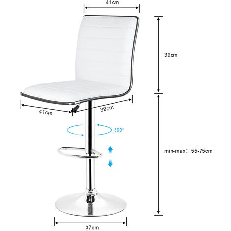Ces 2 tabourets pivotent à 360° et sont réglables en hauteur en continu.