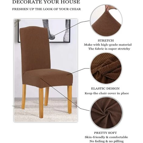 ZOLGINAH Housse De Chaise 6 Pièces,Salle à Manger Stretch Extensible Antidérapante Couverture De Chaise,Housse De Salle à Manger Amovible Lavable Housse De Chaise Pour Salle(6 Pièces,café)